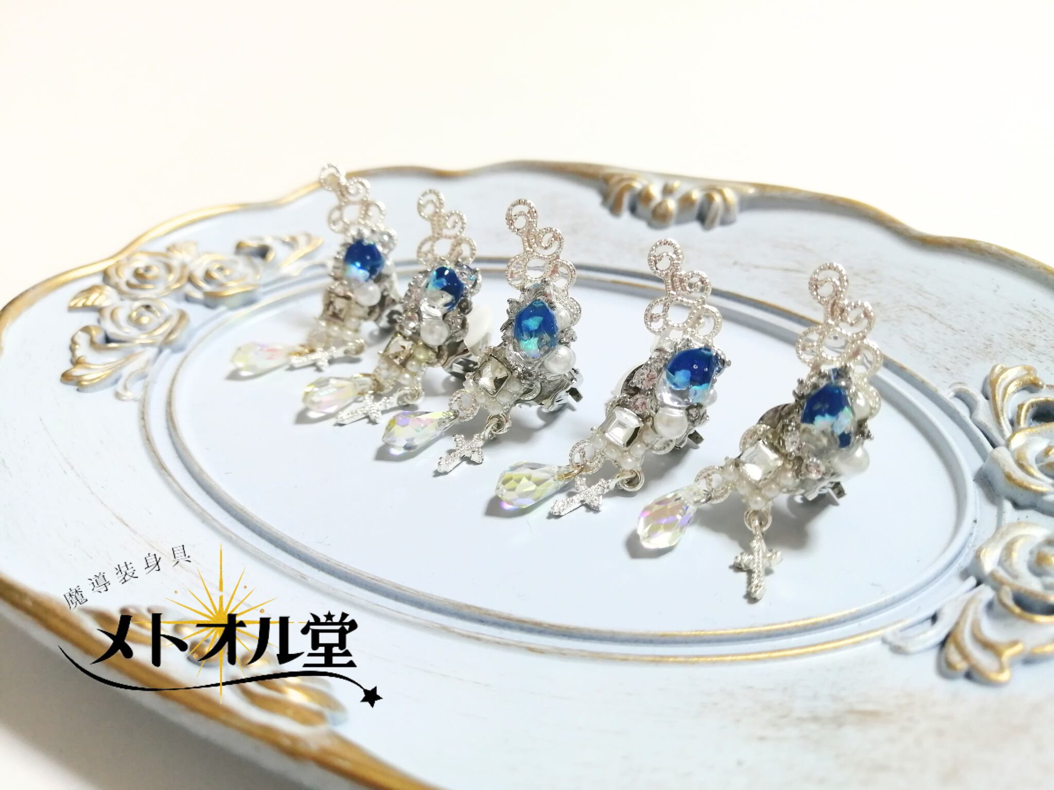 金メッキ、ガラスビーズ、UVレジン、スワロフスキー使用