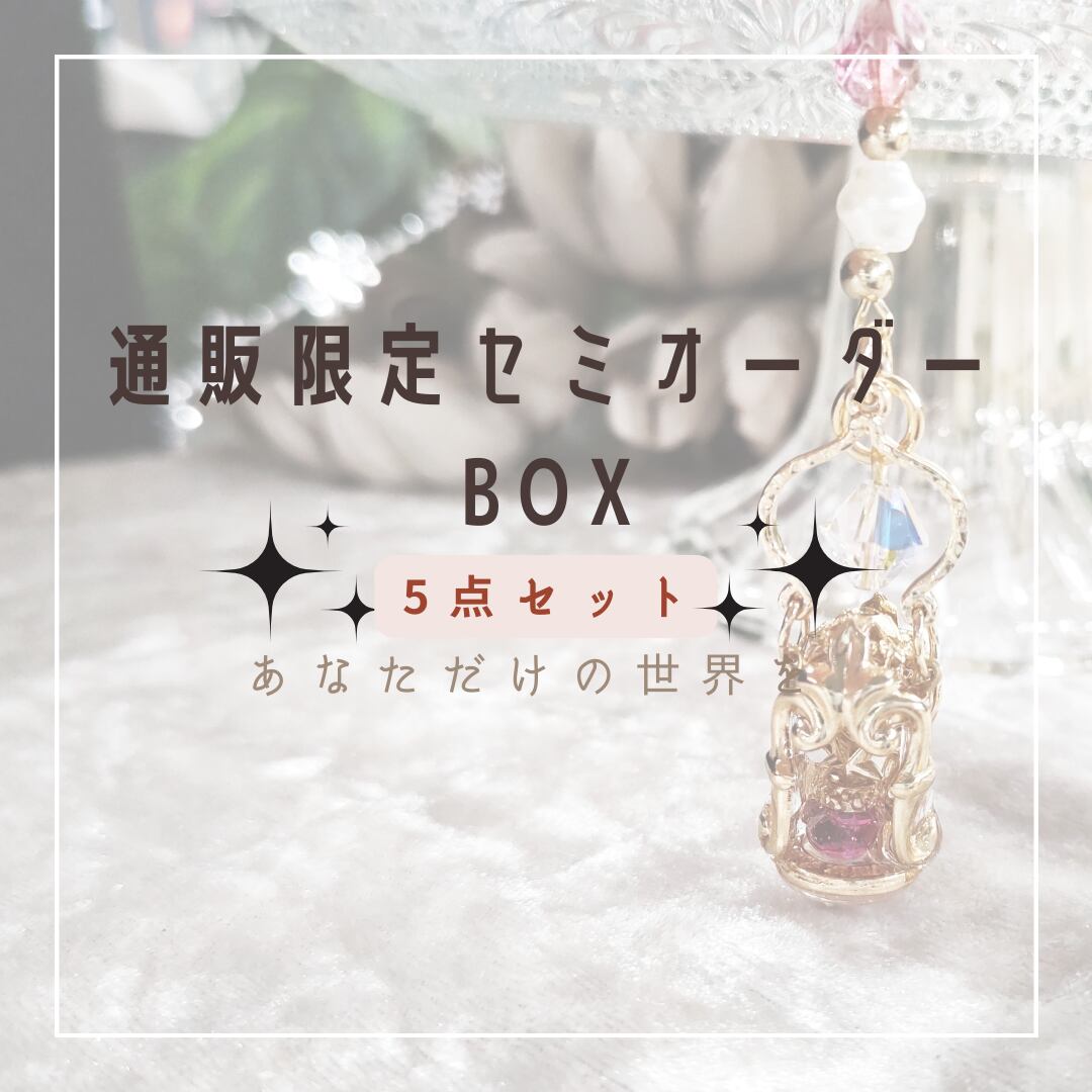 二次創作(うちの子、探索者含む)では好きなキャラ人を1人、または好きなCPを一つお選び頂き、その後注文にあわせて、アクセサリー(ネックレス、ブレスレット、イヤリング等)やストラップなどオンリーワンの5点をお届けするセミオーダーボックスです。